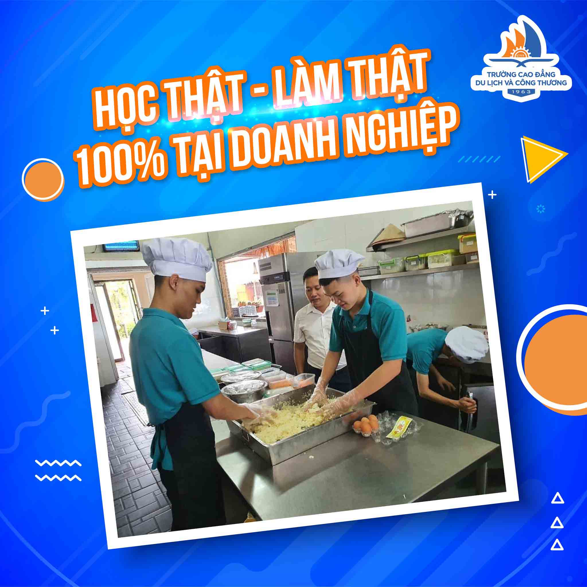 Với chương trình giảng dạy chất lượng, CTIT luôn chú trọng đến việc xây dựng chương trình đào tạo theo phương châm “ĐÀO TẠO GẮN VỚI THỰC TẾ” - “ĐÀO TẠO NHỮNG GÌ DOANH NGHIỆP CẦN” . Thật vậy, khi theo học tại Trường Cao đẳng Du lịch và Công thương sinh viên được tích lũy 30% kiến thức lý thuyết, 70% học thực hành ngay tại phòng học và từ thực tiễn doanh nghiệp giúp sinh viên làm quen trực tiếp với ngành nghề mà mình đang theo học ngay từ khi còn ngồi trên ghế nhà trường. Đó cũng là lý do vì sao sinh viên CTIT khi ra trường luôn đáp ứng được các nhu cầu của nhà tuyển dụng.