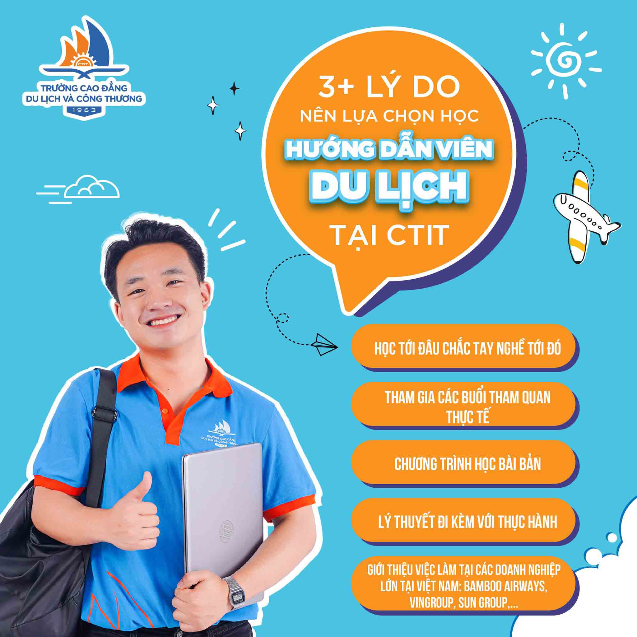 Trên đây là 3+ lý do nên lựa chọn ngành hướng dẫn viên du lịch tại CTIT. Chắc chắn học ngành này tại Trường Cao đẳng Du lịch và Công thương là trải nghiệm đáng để thử đấy!Xem thêm: CÁC CHUYÊN NGÀNH XÉT TUYỂN TẠI CAO ĐẲNG DU LỊCH VÀ CÔNG THƯƠNG